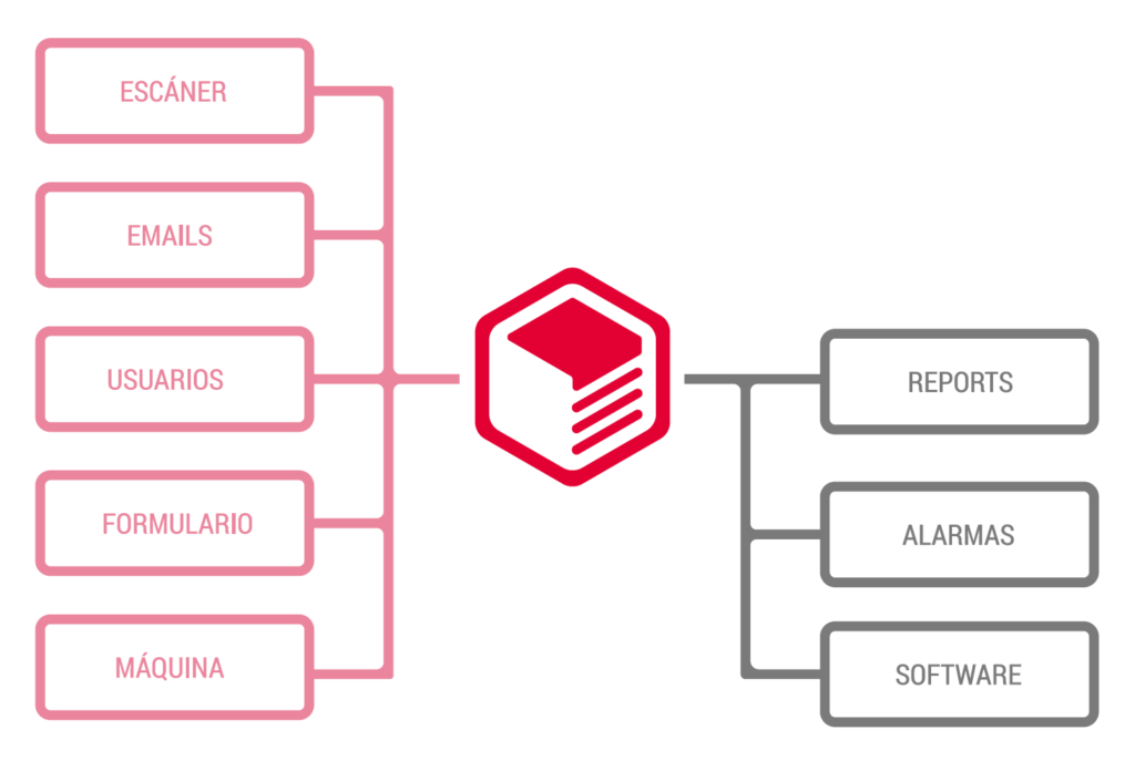Recibe datos de las máquinas conectadas en red o a través de importaciones automatizadas.